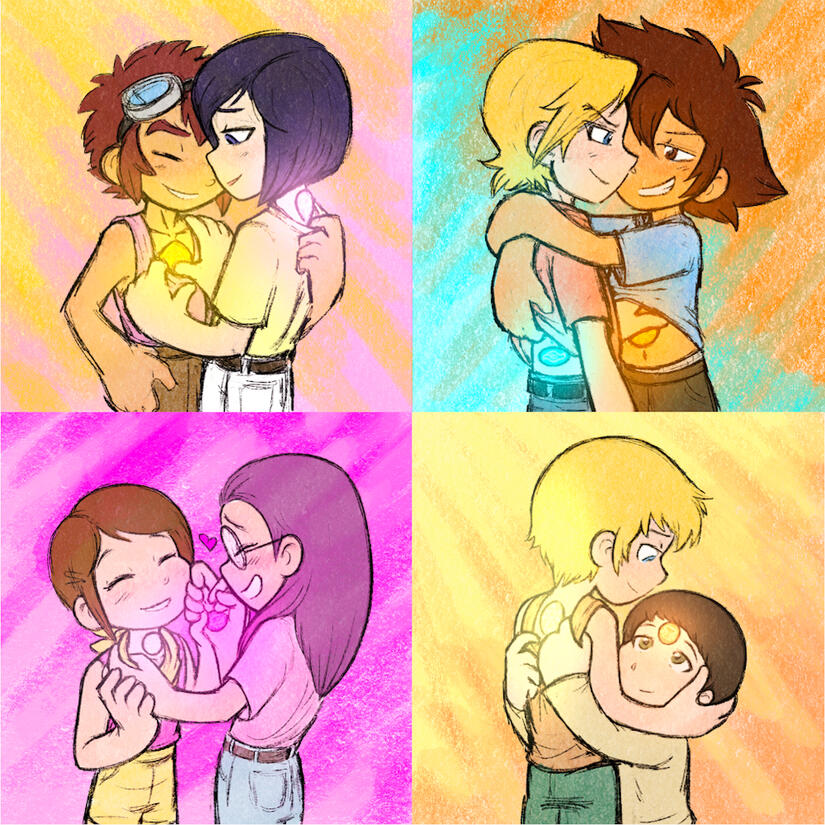 Jogress pairs, on the other hand, are Soulmates. When they touch each other's gems skin-to-gem, it feels exactly like when they jogress their digimon, and they can work on deepening that connection as well.